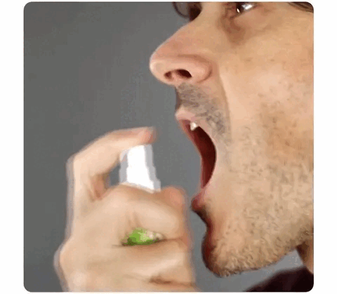 قم برجّ العبوة جيدًا، ثم رشّ مرتين في الفم أو الحلق حسب الحاجة، مع أخذ نفس عميق بعد الرش. يُفضل استخدامه صباحًا وقبل النوم.
