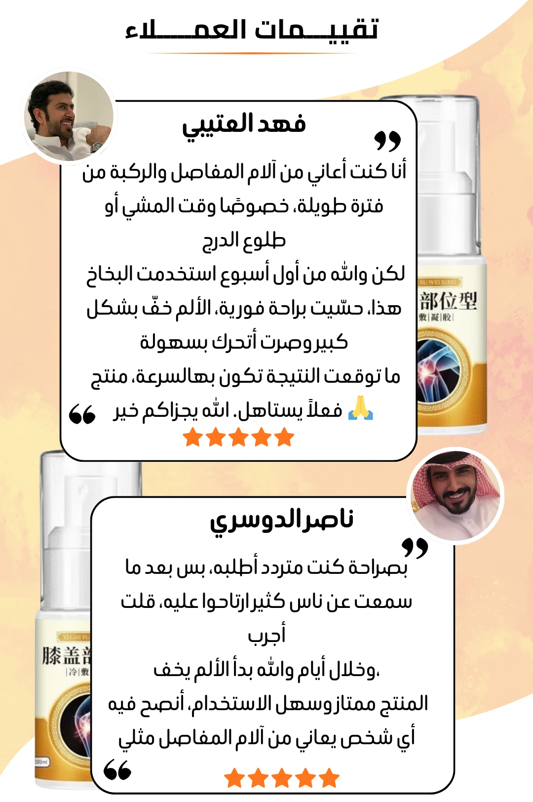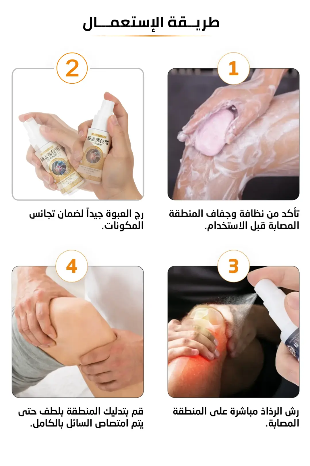 نعم، يمكن استخدام الرذاذ في الركبتين، الوركين، اليدين، العمود الفقري، الأصابع، المعصمين، المرفقين، الأكتاف، القدمين والكاحلين، والرقبة وأسفل الظهر.